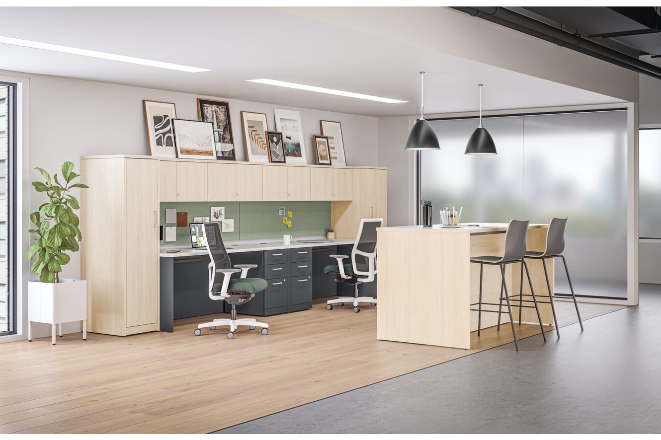 H10502.S - 10500 Series BBF Pedestal; H105295R.LWFELWFE - 10500 Series Personal Wardrobe; H105296L.LWFELWFE - 10500 Series Personal Wardrobe; H105381K.LWFELWFE - 10500 Series Wall Mount Storage 36W; H10592.LDW1S - 10500 Series Desk Shell, 72x30; HARCHA2 - Arch Handle Kit; HARCHA3 - Arch Handle Kit; HIWMM.Y1.A.S.IC.SMOMEGO34.NL.SB.DWX - Ignition 2.0 Mesh Back Task Chair; HJTRGH24.P - Cable Management Tray; HLSL72TW.VST03 - Tackboard for Wall Mount Cabinets; HRUCK5L.S.P7A - Ruck Stool; HSISLAFB2P7242S2.LWFE - Storage Island Septum; HSISLAFEYB3642.LWFE - Storage Island End Panel; HSISLAUT2PYB7236S2.LWFE.FE - Storage Island Top 36x72; HTLSCUSQRPLNT15L.PJW.G - Sculpt Planter