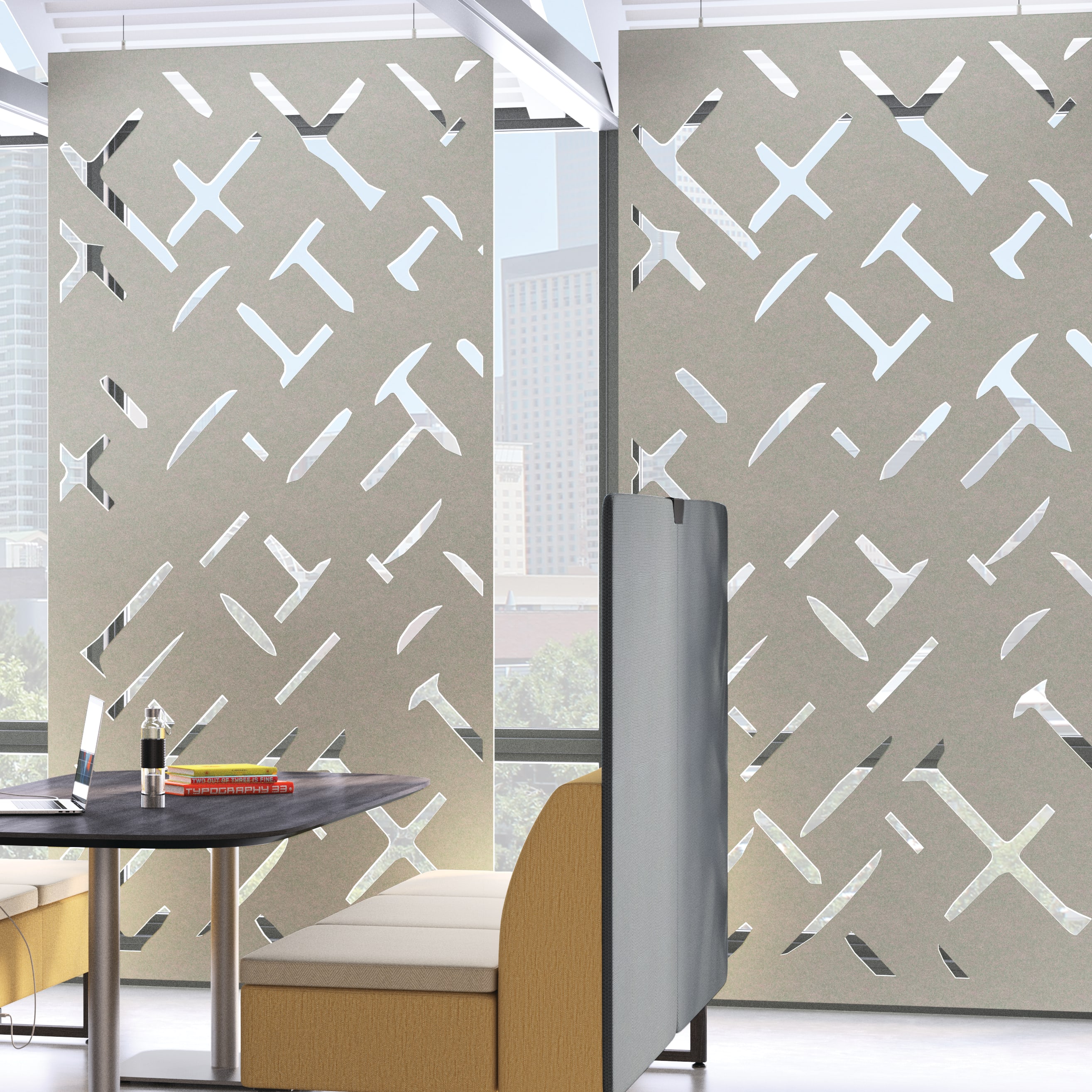HASHB1.B.SMHMAPT25.KDK.SWLSA1 - Astir One+ Seat, Low-Back; HASHB3.N.QUL01.PBLE07.KDK.SWLSA1 - Astir Three-Seat, High-Back Screen; HUVSTBHSD.DAL1 - ScreenTrak® Alto Hanging Screen; HCWTSFTS36J.N.LSA1.SA - Birk Soft Square Top with Knife Edge; HCWTSBM18.P8V - Birk 18"H Single Pedestal, Medium; HCWTB3684J.N.LSA1.SA - Birk Soft Rectangle Top with Knife Edge; HCWTDSBM27.P8V - Birk 27"H Double Pedestal Base, Large; HUMPWR-1P-2U.STRM - Miki Under-Worksurface Power Module