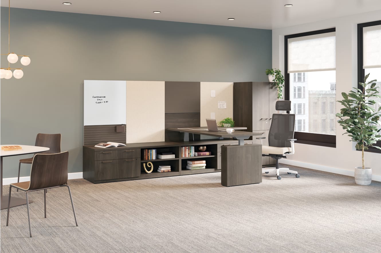 HRUCK1L.LFW1.P7J - Ruck Chair; HCWTSFTS36J.N.LDW1.DW - Birk Soft Square Top with Knife Edge; HCWTSBL29.PJ7 - Birk Seated Height; HWWT3030M.GHW2.PJW - Workwall 30"x30" Glass Markerboard Tile; HWWT4530F.P7D.PJW - Workwall 30"x15" Slotted Tool Rail; HWWT4530F.TP35.PJW - Workwall 45"x30" Fabric Tile; HWWT2230P.P7D.PJW - Workwall 30"x22.5" Metal Tile; HWWT2230L.LFW1FW.PJW - Workwall 30"x22.5" Laminate Tile; HIWMM.Y2.A.TS.IK.FLA53.DW.SB.DWX - Ignition Task Chair; HWWAS.P7D - Workwall Small Bin; HNL246021RH.LFW1.M.L.LFW1.LFW1.LFW1- Concinnity HAT Low Credenza 60 x 24 x 21 1/2H Right Hand; HNL247221LH.LFW1.M.X.LFW1.LFW1.LFW1- Concinnity HAT Low Credenza 60 x 24 x 21 1/2H Left Hand; HNL723060RCH.LFW1.P.LFW1- Concinnity Corner Cover Top 72"W x 30"D x 60"R; HNLAB3SIL.PR6.MEM- Concinnity 2 Stage HAT Integrated Leg; HNL242465TLR.M.LFW1.LFW1- Concinnity Storage Towers, Laminate Doors- 24"W x 24"Dx 64 3/4"H; HNL30SHR.X.LFW1- Concinnity Shroud 30"D