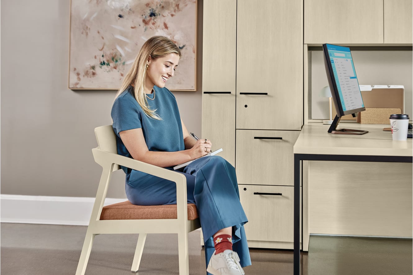 Confer chair with Concinnity desk