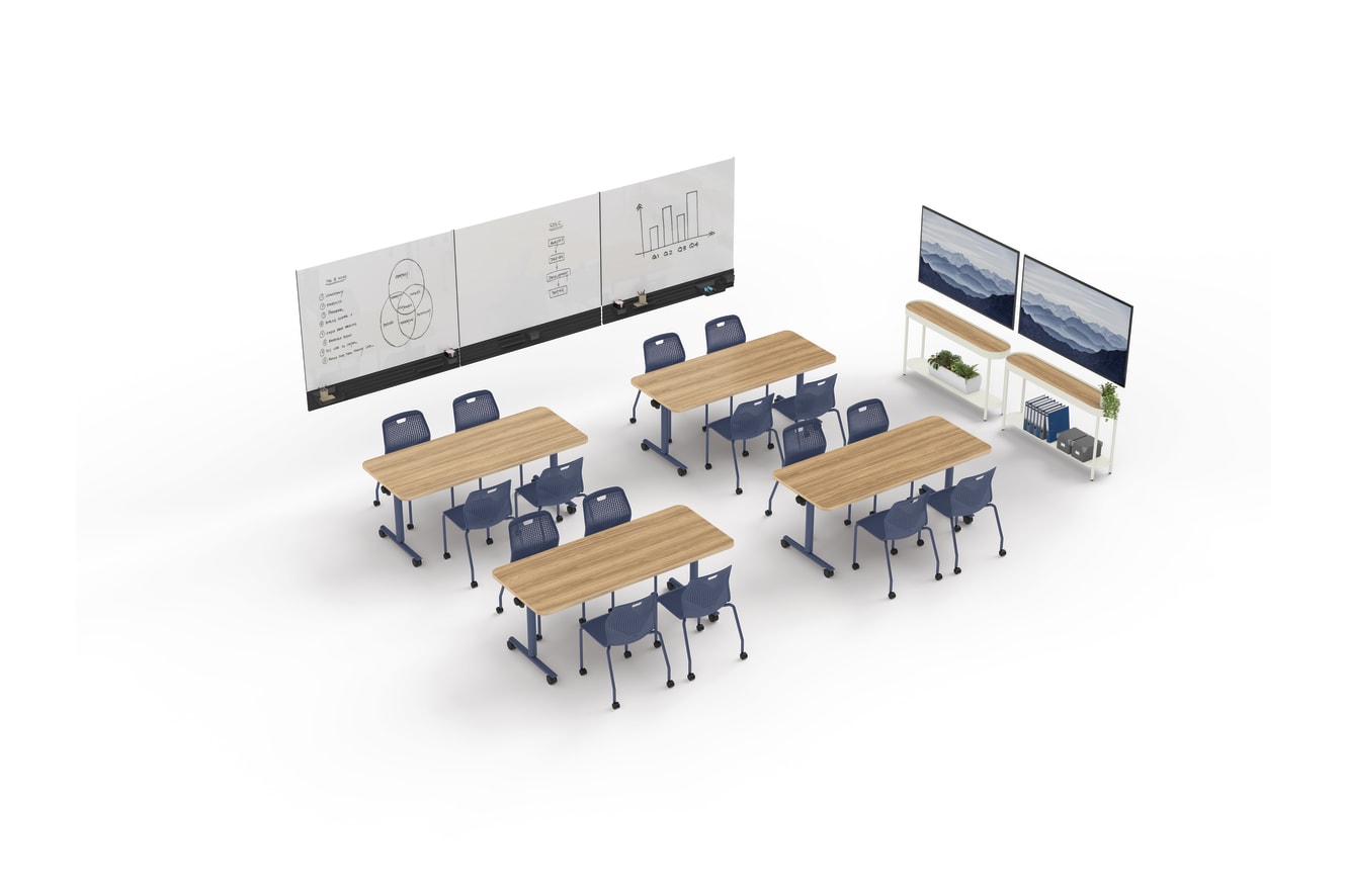 HEST-R3072TAHH.LFC1.P097 - Field Trip 30x72 Flip-Top Table; HPMMV-L1PO.H.P097.HR.AA - Etch Armless Chair; HWWAC.LOFT - Workwall Accessories – Cup; HWWAST.LOFT – Workwall Accessories – Small Tray; HWWATS.LOFT – Workwall Accessories – Small Shelf; HWWT4560M.GPB2.PJW – Workwall 45H Glass Markerboard Tile; HTLSCUPILCNSL1253.LFC1.LOFT - Sculpt Occasional Table