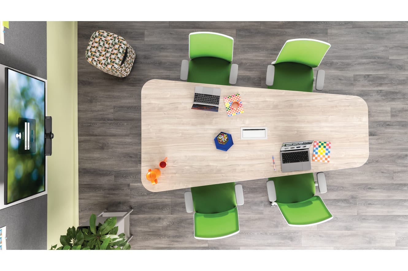 HIWMM.W2.A.TS.RM23.RM23.DW.SB.DWX - Ignition 2.0 task chair; HT29AL96.S - Preside 29.5H-Angled Leg for 96W Top; HTG2PWR-3P-1U-W.FOG - ElloraB G2 Flptop-3 AC Pwr; HTLTPR4896.KI.G2.LKI1 - Preside 48x96 Tapered Top; HWWT4536F.NBLE16.PJW - Fabric Tile 45Hx36W; HWWT4548V.LOFT.LOFT.PJW - Laminate Media Tile 45Hx48W; HTLSCUSQRPLNT15H.T1.G – Sculpt Planter; HASPP.1055-60.H.BL – Astir Pouf