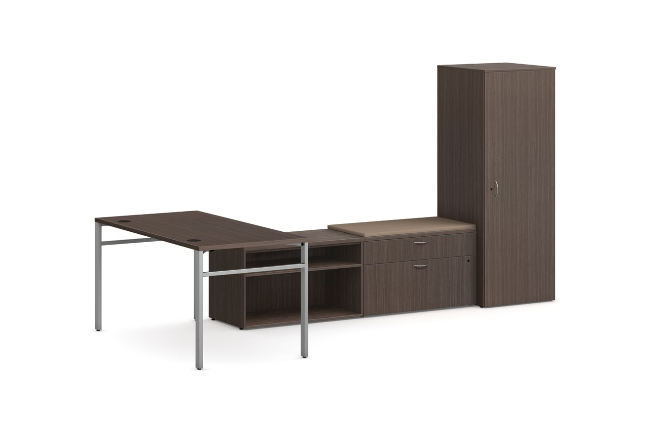 HLPLW2424.LSL1 – Mod Wardrobe; HLPLCL3620BF.LSL1 – Mod Low Credenza, 2 drawers; HLPLCL3620S.LSL1 – Mod Low Credenza, 2 Open Shelves; HLPLCL3620TOP.LSL1 – Mod Low Credenza Cabinet Top; HLPLCSEAT3620.WM01 – Mod Low Credenza Cushion; HLPLLEG30U.SLVR – Mod U-leg Support; HONPLRW6030.LSL1 – Mod Worksurface; HONPLZS60B – Mod External Stiffener