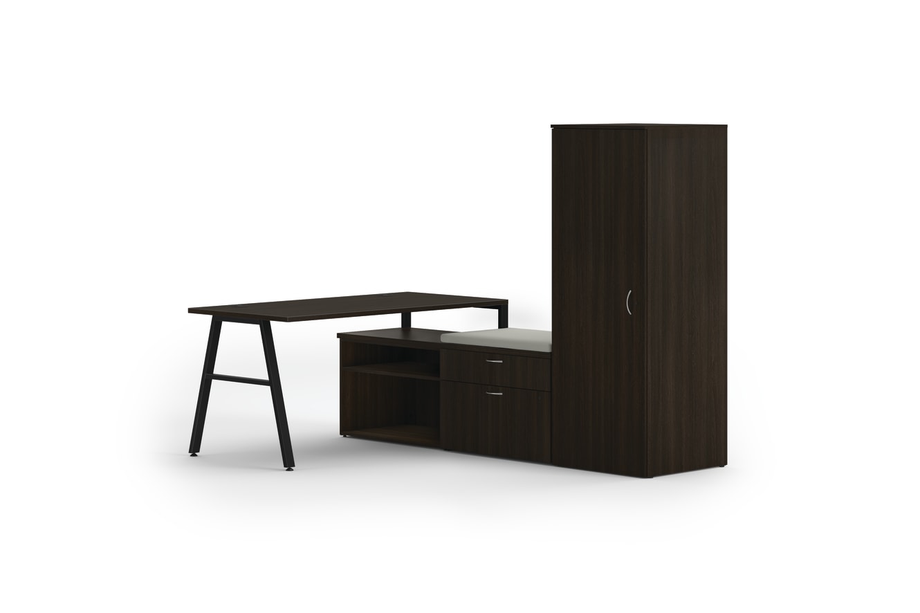 HLPL8460LDSKJA1ALEGB – Bundle; HLPLRW6030.LJA1 – Mod 60W x 24D Worksurface; HLPLSL30.BLKP – Mod External Stiffener; HLPLLEG30A.BLKP – Mod A-leg Support; HLPLCL3020S.LJA1 – Mod 30W x 20D x 21H Open Storage Cabinet for Low Credenza; HLPLCL3020BF.LJA1 – Mod 20W x 20D x 21H 2-drawer Personal Cabinet for Low Credenza; HLPLCL6020TOP.LJA1 – Mod 60W x 20D Cabinet Top; HLPLCSEAT3020.CN02 – Mod Low Credenza Cushion; HLPLW2424.LJA1 – Mod Wardrobe