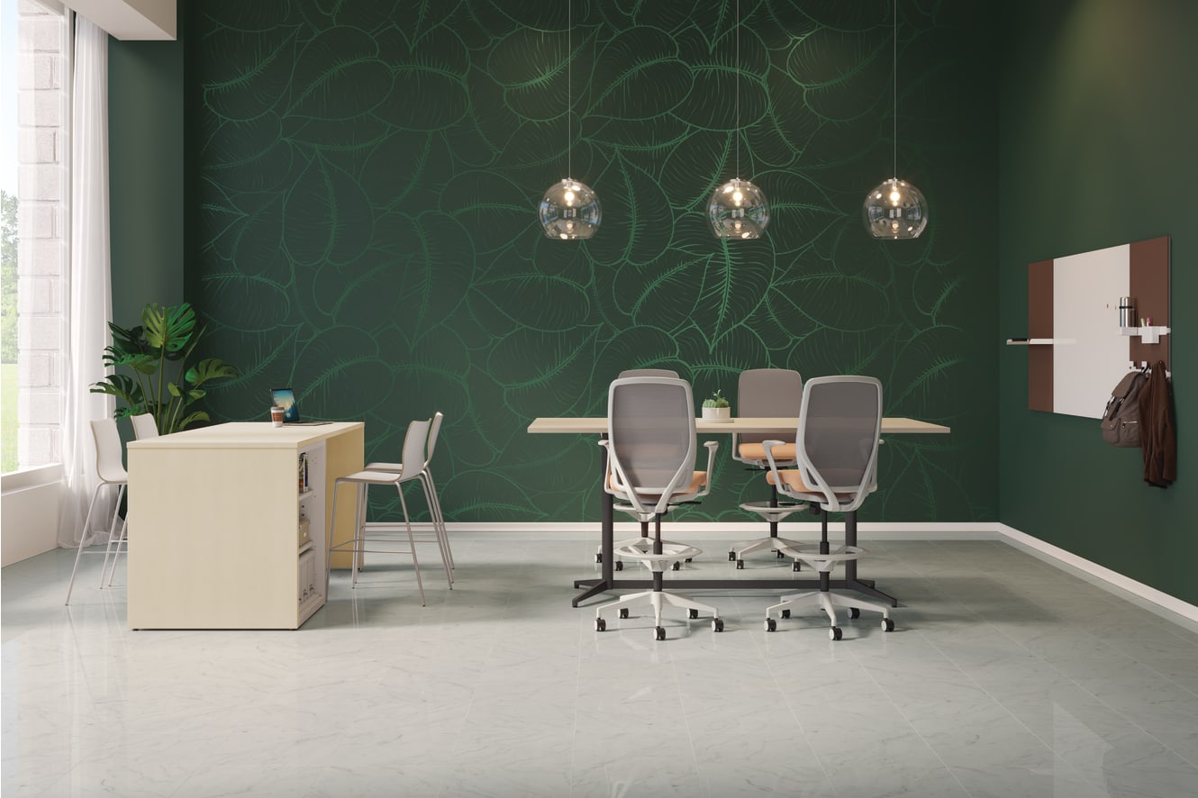 HNRS.S1.SC2.F.TS.IT.SCFSHPS15.NL.SB.TI - Nucleus Task Stool; HRUCK5L.LDW1.PR8 - Ruck Laminate Shell; HWWT4524F.PCAMBLT59.S - 45"Hx24"W Fabric Tile, Disperse Ink; HWWASHELF24.LPE1PE.T1 - 24"W Floating Shelf, Phantom Ecru, Platinum Metallic; HWWARAIL24.PJW - Workwall 24"W Tool Rail Accessory; HWWAC1.PJW- Workwall Cup accessory; HWWASB.PJW - Workwall Small Bin accessory; HWWAH.PJW - Workwall Hook accessory, Designer White; HWWT4560M.GWH2.S - Workwall 45""Hx60""W Magnetic Glass Markerboard Tile; HT42FB3672.P - 421 ∕2′′H Standing Height Base for 36′′ x 72′′ Tops Preside Standing Height Footed Y-Base; HTLC3672.GPE.N.LPE1- 72′′W x 36′′D Preside Rectangle Top; HSISLAUT2PYB8436S2.LPE1.PE- Islands Top HSISLAFESP3642.LPE1- Islands Return Panel HFSC183640W.PJW- Flagship 3 Shelf Bookcase