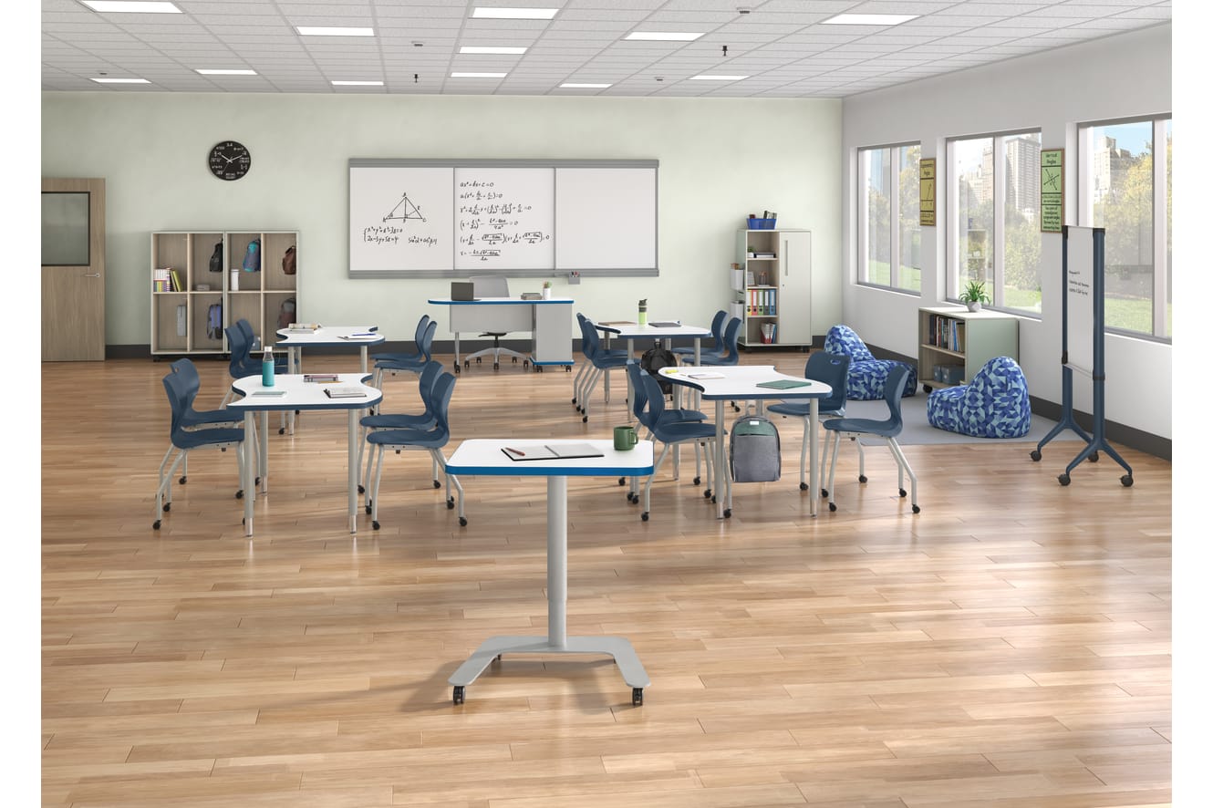 HESCS4H2WSR.C.NL.AB.P8A.NA.P8A.LKI1 – Class-ifi Command Station right handed; HESB2H3WS.C.N.S.P8A.NA.P8A.LKI1 – Class-ifi 2_High Bookcase; HESL4H2WS.C.N.S.P8A.NA. P8A.LKI1 – Class-ifi Locker 573∕8′′H, 2-Wide; HESW3054E.N.LDW1.RE – Build Ribbon Table Top; HEB4LEG.T1 - Build™ Table Adjustable Height Leg Pack; HETLEC-REC2430.N.LDW1.AT.SVR.PR6 – Roll Call Pneumatic Lectern Rectanlge Top; HSS4L-18B.C.RE.PLAT - SmartLink 18” Student Chair; HMVMB-3072WW.C.RE - Motivate Mobile Markerboard; HEFL1. SCFSTRO83 – Confetti Floor Lounge; HLTV2460TMOD-3.LDW1.AT.T1 – SmartLink Value Teacher Station with Modesty; HCLQT.W0.TC.F.S.IF. SCFSTRO83.NL.SB.DW – Cliq Task Chair