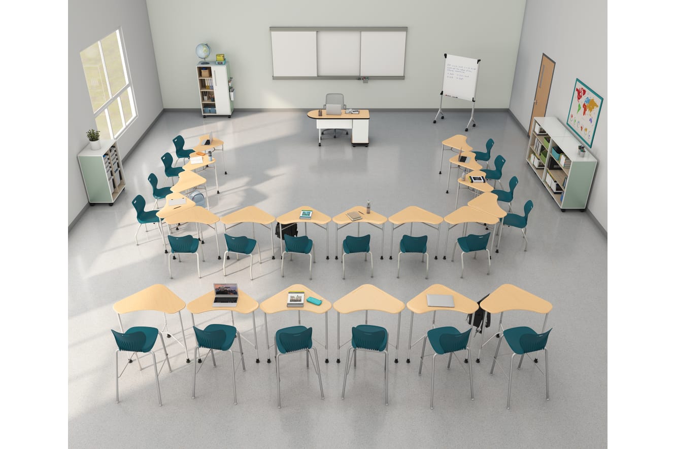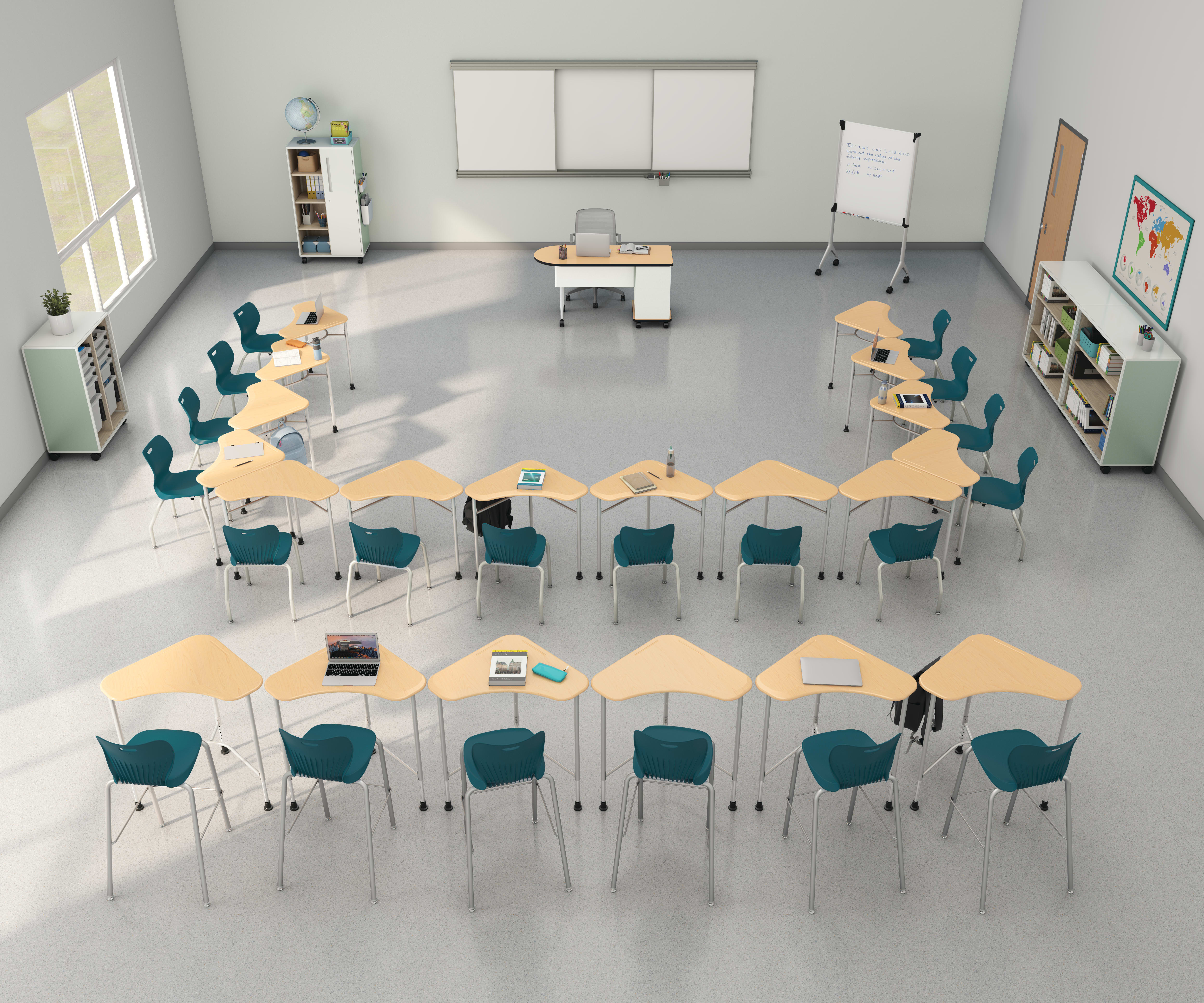 HLTV2460TMOD-3.DD.PJW.PJW - SmartLink Value Teacher Desk with Modesty Panel (Right-hand); HLDV-M3T.E.DD.T1 - SmartLink Value Sit-to-Stand Student Desk; HSS4L-18B.N.CY.PLAT - SmartLink 18H Chair; HSS4L-24B.N.CY.PLAT - SmartLink 30H Stool; HLWR-12 - 144 - Wall Rail; HWBF1-1248W.X - SmartLink Learning Board, Fixed Whiteboard, 1-sided 144Wx48H; HWBS-448WT.X - SmartLink Learning Board, Sliding Whiteboard/Tackboard 48Wx48H; HESCS4H2WSR.C.N.AB.PJW.NA.P8A.LKI1 - Class-ifi Command Station; HESB3H3WS.C.N.S.PJW.NA.PA8.LKI1 - Class-ifi Bookcase, 3-High; HEST3H2WS.C.N.S.PJW.NA.P8M.LKI1 - Class-ifi Tote Storage, 44H; HMVMB-3672WW - Motivate Marker Board