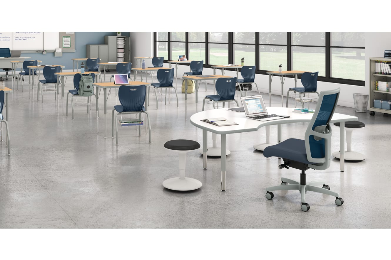 HESKD4872E.N.FMQ1.K (Top) + HEB4LEG (Legs) – Build Arc Table; HLVMSC5630R.L.T1 – SmartLink Mobile Cabinet Storage; HBSDRECT2031.N.D.K – Build Student Desk; HEFS01.BL - Revel; HLTV2460TMOD-3.B9.K.T1 – SmartLink Teacher’s Desk; HSS4L-18B.E.RE.PLAT – SmartLink Chair; HSSA-WB1618 – Book Basket for SmartLink Chair; HIWMM.Y2.A.TS.RM26.UR95.TL.SB.TI – Ignition 2.0; HLVBC4330.T1 – SmartLink Bookcases; HLVMSC4330R.L.T1 - SmartLink Mobile Cabinet Storage