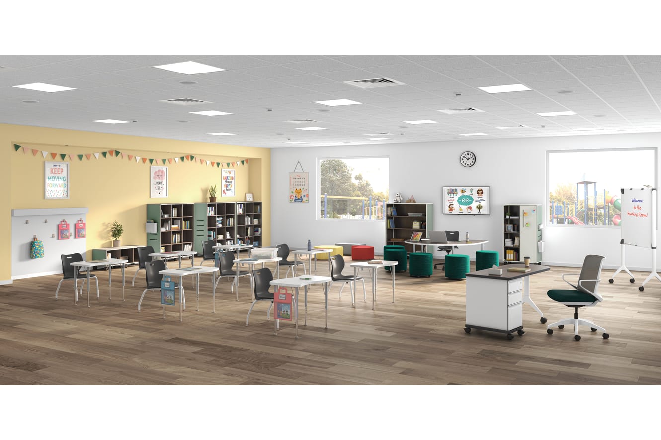 HESH6066E.N.LSW1.DW - Build Horseshoe Table; HEB4LEG.T1 - Build Standard Table Leg; HSSTK-18B.H.LA - SmartLink Task Chair; HFLYO1.H.1044-67 - Flock Mini; HBSDRBN2231.N.FMQ1.DW - Build Ribbon Desk Top; HEBSD4LEG.T1 - Build Desk Leg; HSS4L-16B.C.LA.PK7 - SmartLink 16” Student Chair; HCLQT.W0.TC2.F.S.IK.1046-64.NL.SB.DW - Cliq Task Chair; HLTV2460T-3.LSW1.S.PJW - SmartLink Value Desk; HESC4H3WS.C.N.AB.PJW.NA.P8A.LSW1 - Class-ifi Cubbie Storage; HESB4H3WS.C.N.AB.PJW.NA.P8A. LSW1 - Class-ifi 4-High Bookcase; HESCS4H2WSR.C.DNL.AB.PJW.NA.P8A. LSW1 - Class-ifi Command Station; HAESS - Fuse Side Saddle; HAEHF - Fuse Hot File; HECSJVHP.RUSH23.G - Tangram Jv Hexagon Pouf; HECSJVAP. WP98.G - Tangram Jv Arrow Pouf; HECSRB.N.HAML18.PP71 - Tangram Bench Story Step; HCLA65 - Build Backpack Hook